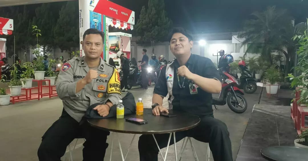 Bhabinkamtibmas Kel. Cijerah Giat Patroli dialogis dengan Karyawan SPBU Jl. Sudirman Rt.02 Rw.02 Kel. Cijerah Kec. Bandung Kulon Kota Bandung