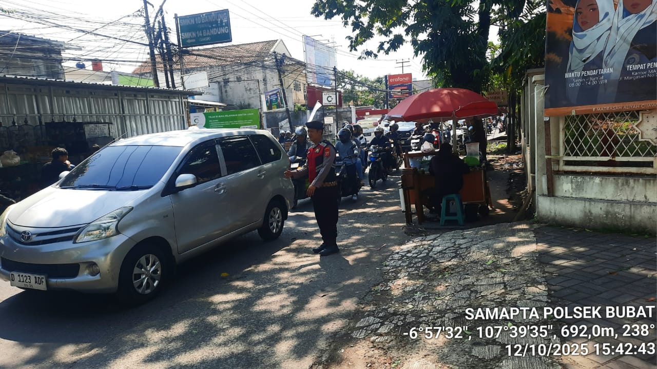 Polrestabes Bandung – Polda Jawa Barat – Polsek Buah Batu – Guna mengantisipasi Kemacetan Lalu Lintas maupun kerawanan Sore lainnya, Anggota Polsek Buah Batu melakukan Kegiatan Stong Point Penjagaan maupun pengaturan lalu lintas di beberapa titik lokasi yang di yang dianggap rawan timbul kemaceta,minggu.(12/10/2025)