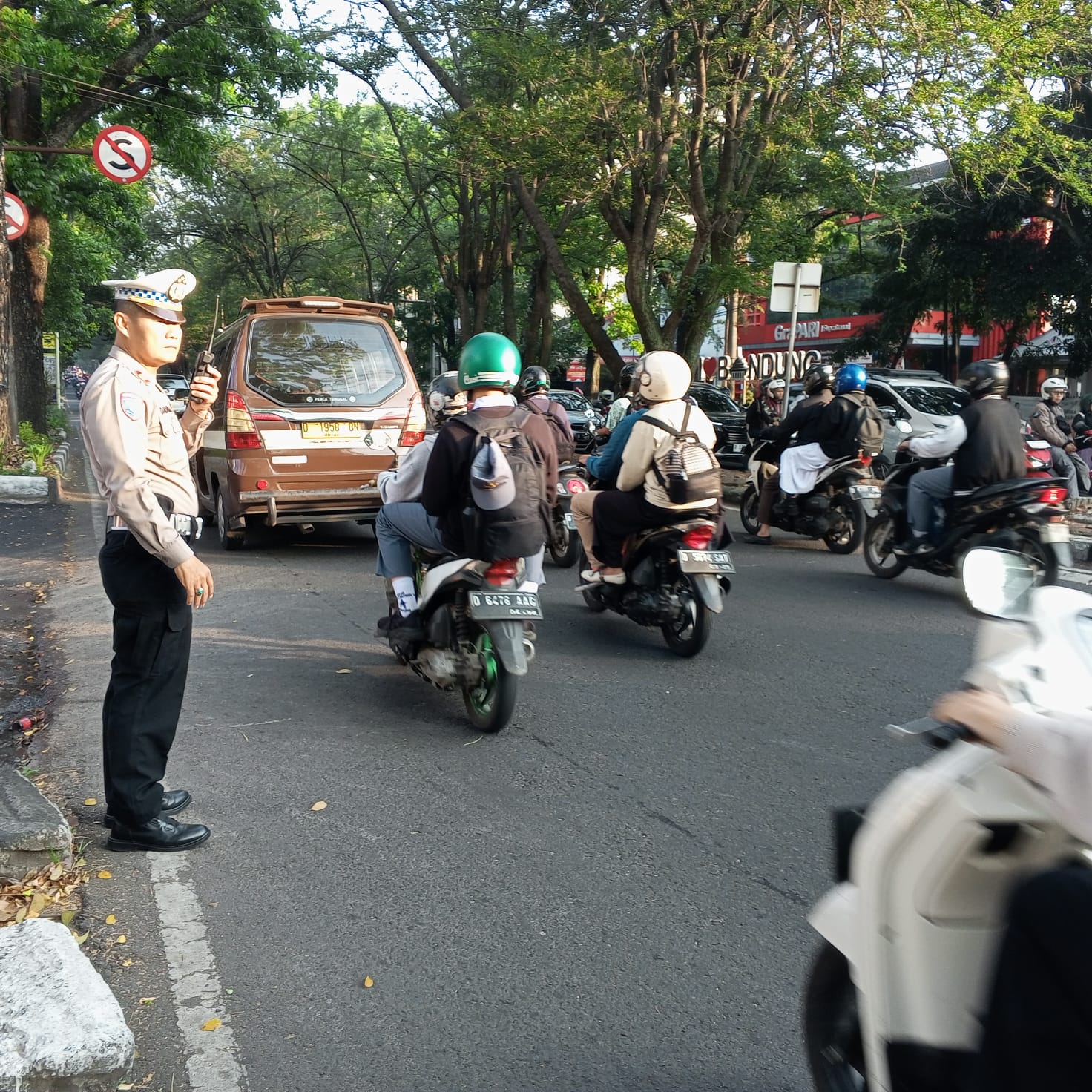 Antisipasi Kemacetan di pagi hari personil Unit Lalulintas Polsek Bandung Wetan Melaksanakan Pengamanan Jalur di Jl.Dipenogoro kota Bandung antisipasi yanmas pagi hari pada Tanggal 08 Oktober 2025