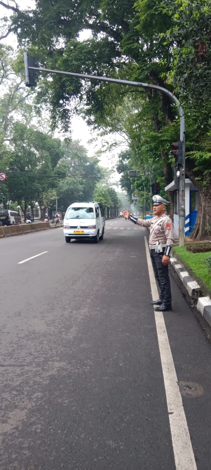 Antisipasi Kemacetan di pagi hari personil Unit Lalulintas Polsek Bandung Wetan Melaksanakan Pengamanan Jalur di Jl.Dipenogoro