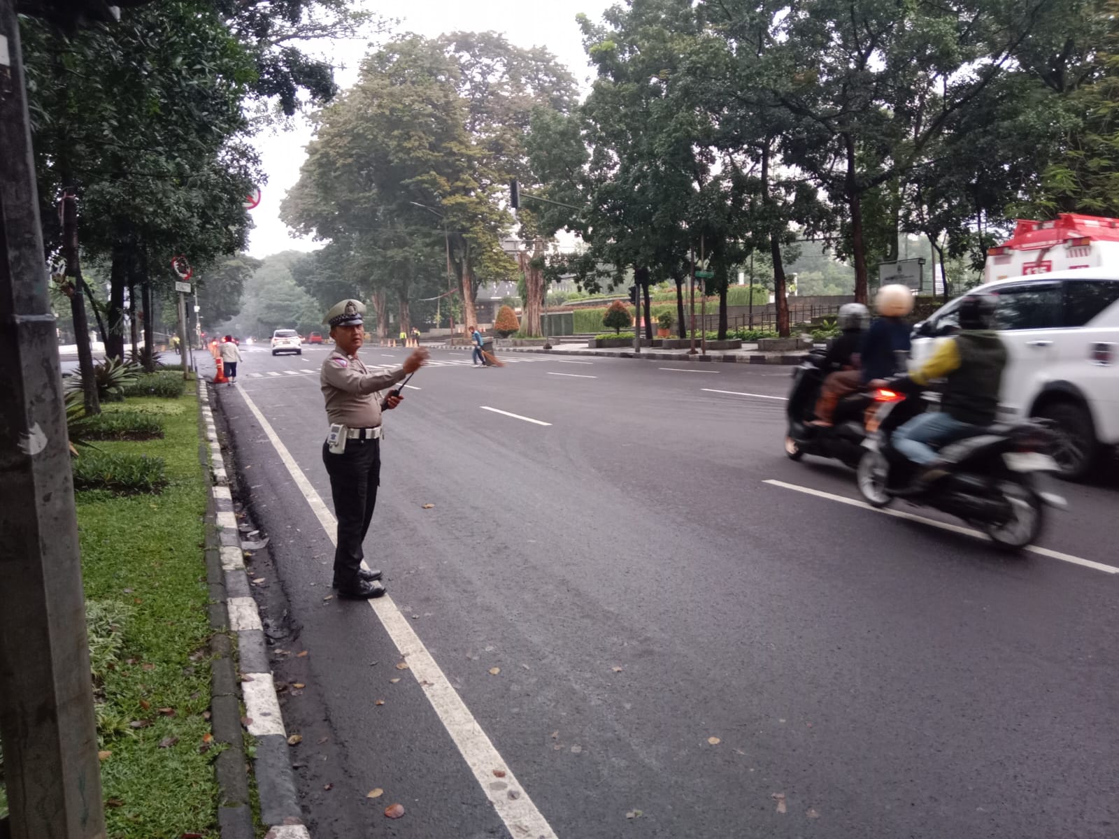 Antisipasi kemacetan pada hari Senin tanggal 14-04-2025 personil lalulintas Polsek Bandung Wetan melaksanakan pengamanan jalur di titik rawan kemacetan Wilayah Hukum Polsek Bandung Wetan Polrestabes Bandung pada hari Senin tanggal 14 April 2025 di jalur dipenogoro
