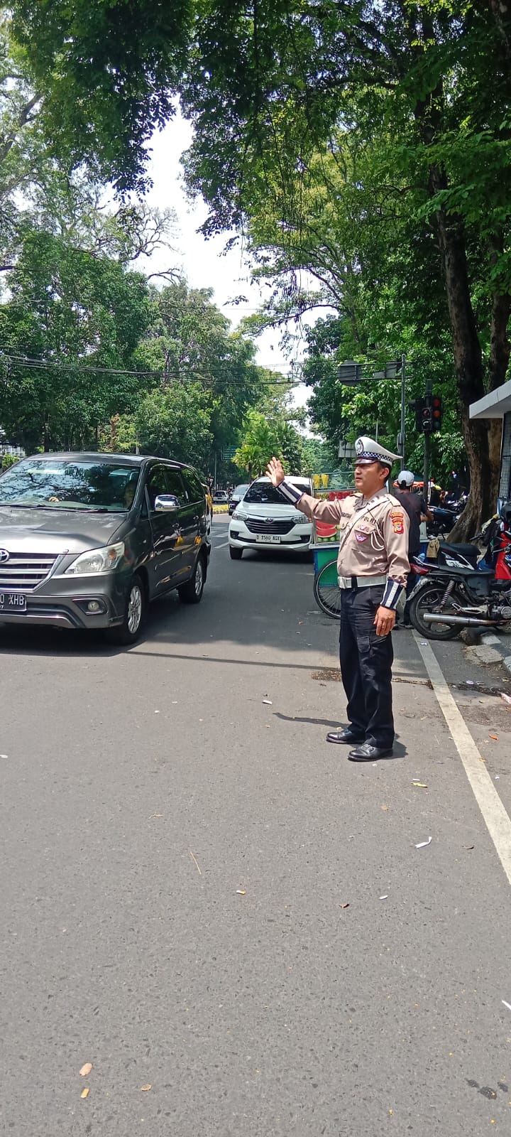 Antisipasi Kemacetan di siang hari personil Unit Lalulintas Polsek Bandung Wetan Melaksanakan Pengamanan Jalur di Jl.Dipenogoro kota Bandung antisipasi yanmas siang hari pada Tanggal 05 Oktober 2025