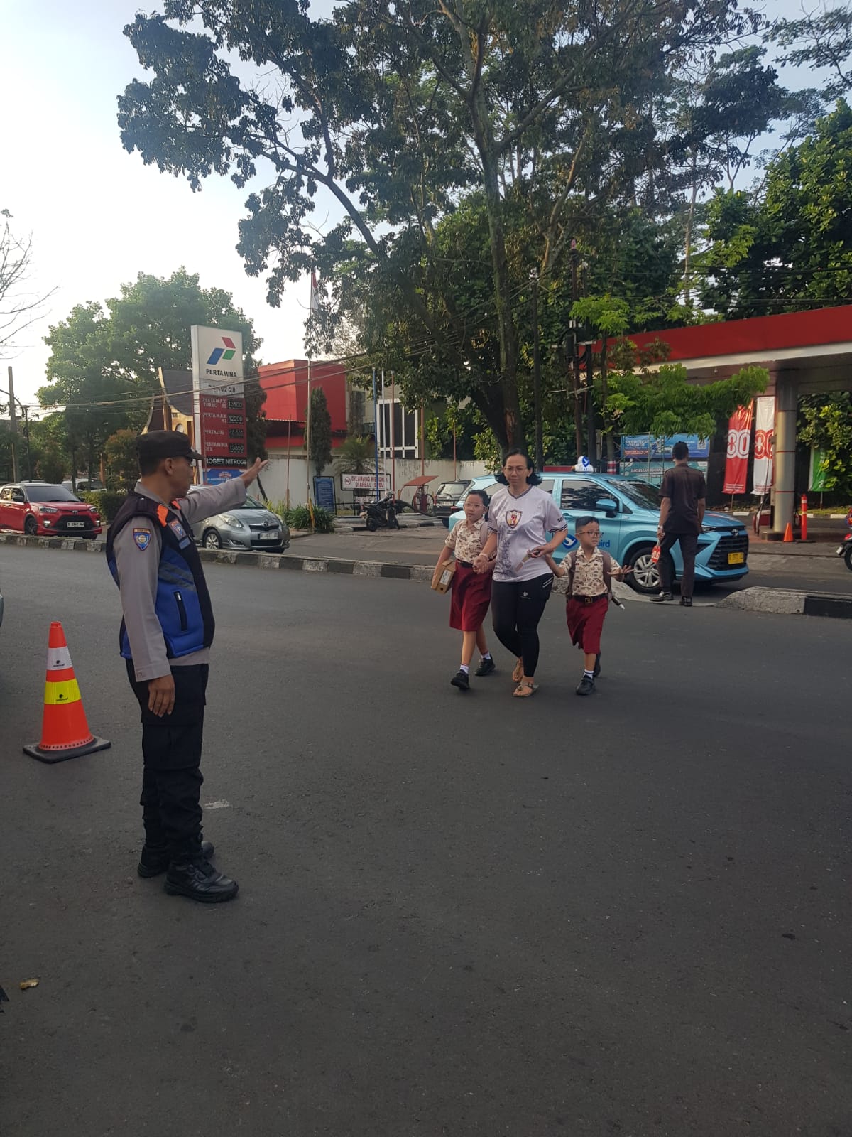 Antisipasi Kemacetan Pagi Hari Personil Unit Bhabinkamtibmas Polsek Batununggal Melaksanakan Pengamanan Jalur