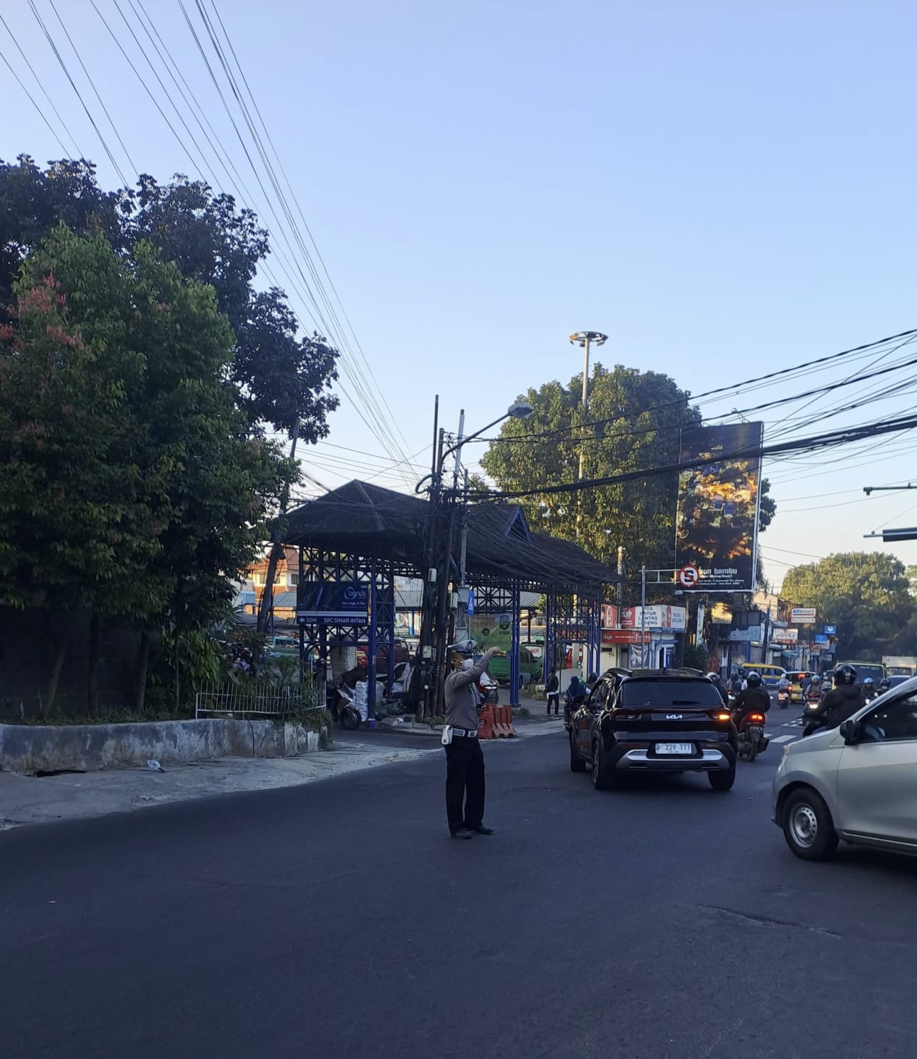 Polrestabes Bandung, Polda Jabar Polsek Sukasari – Antisipasi kemacetan pagi hari, personil lalulintas Polsek Sukasari melaksanakan pengamanan jalur di titik rawan kemacetan Wilayah Hukum Polsek Sukasari Polrestabes Bandung.(20/9/2025)