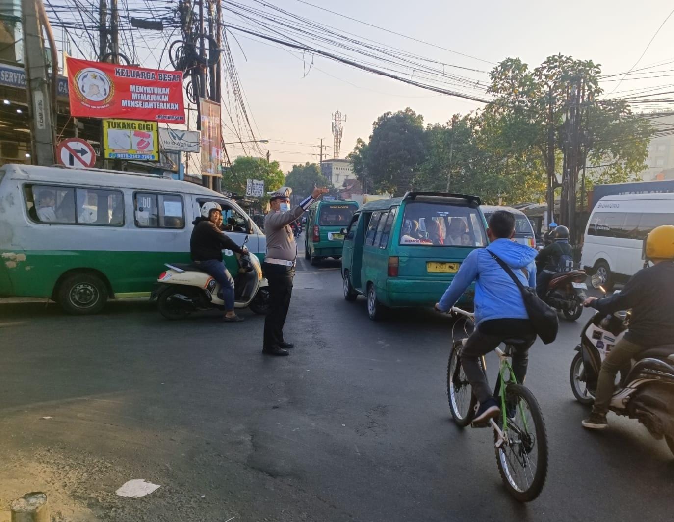 Antisipasi Kemacetan Pagi Hari, Unit Lantas Polsek Babakan Ciparay Lakukan Pengaturan Arus Lalu Lintas