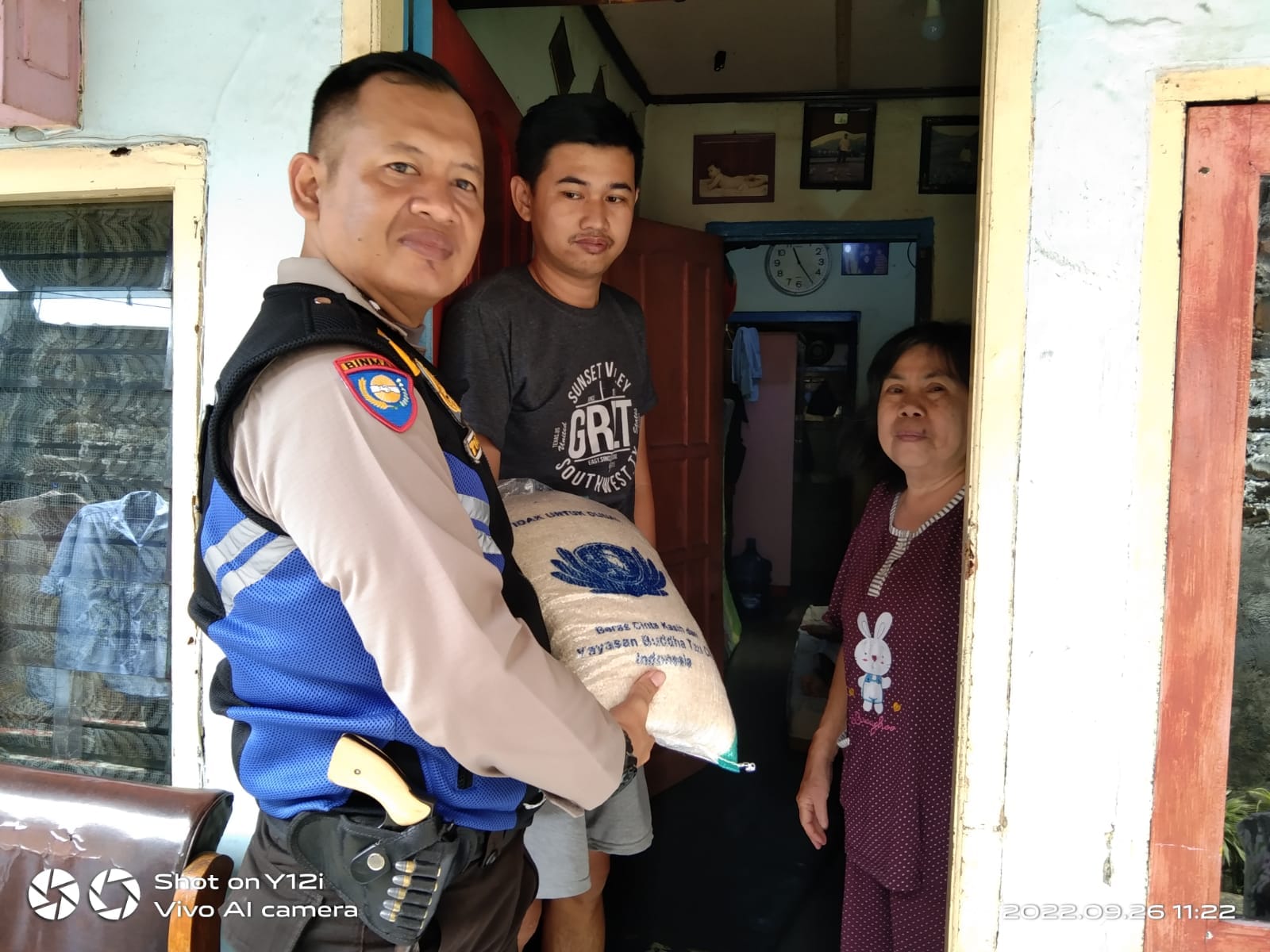 Peduli pada kondisi sosial yang terjadi pada keluarga ini, Bhabinkamtibmas Kelurahan Cikutra Aipda Tujiran, memberikan bantuan sosial berupa bahan kebutuhan sehari-hari berupa sembako