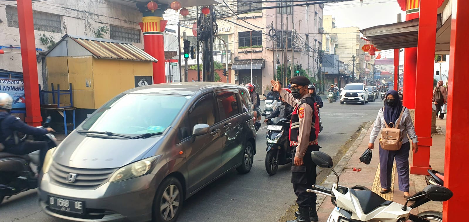 Bantu Masyarakat Pengguna Jalan Jajaran QR Samapta Polsek Andir Lakukan Pelayanan Pagi Dengan Pengaturan Arus Lalin di Beberapa Titik Rawan Macet
