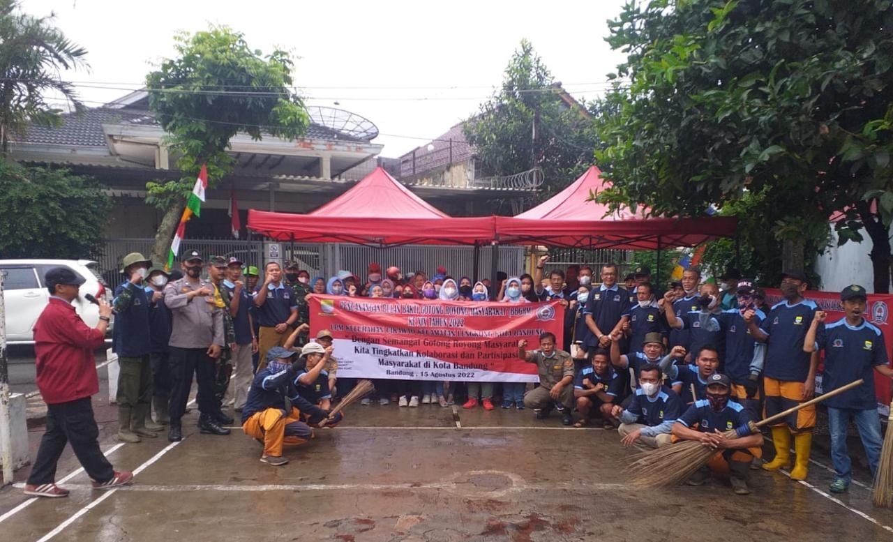 Polrestabes Bandung ,- Bhabinkamtibmas Kelurahan Cikawao Aiptu Teten Hendriana melaksanakan kerjabakti bersama dalam rangka Bulan Bakti Gotong royong masyarakat memperingati Hari Ulang Tahun Republik Indonesia dan hari jadi kota Bandung bertempat di Wilayah kelurahan Cikawao kecamatan Lengkong kota Bandung, Senin (15/8/2022).