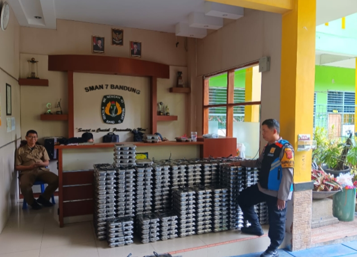Polrestabes Bandung, Polda Jabar-Polsek Lengkong – Bhabinkamtibmas Kelurahan Paledang Polsek Lengkong Polrestabes Bandung Aiptu Muhsin melaksanakan pengawasan pendistribusian program Makan Bergizi Gratis (MBG) dari Yayasan Amanah Puri Annisa Jalan Reog No.21 Kota Bandung, Untuk SMAN 7 Bandung Jalan Lengkong Kecil No.53 Kota Bandung, Senin (27/10/2025).