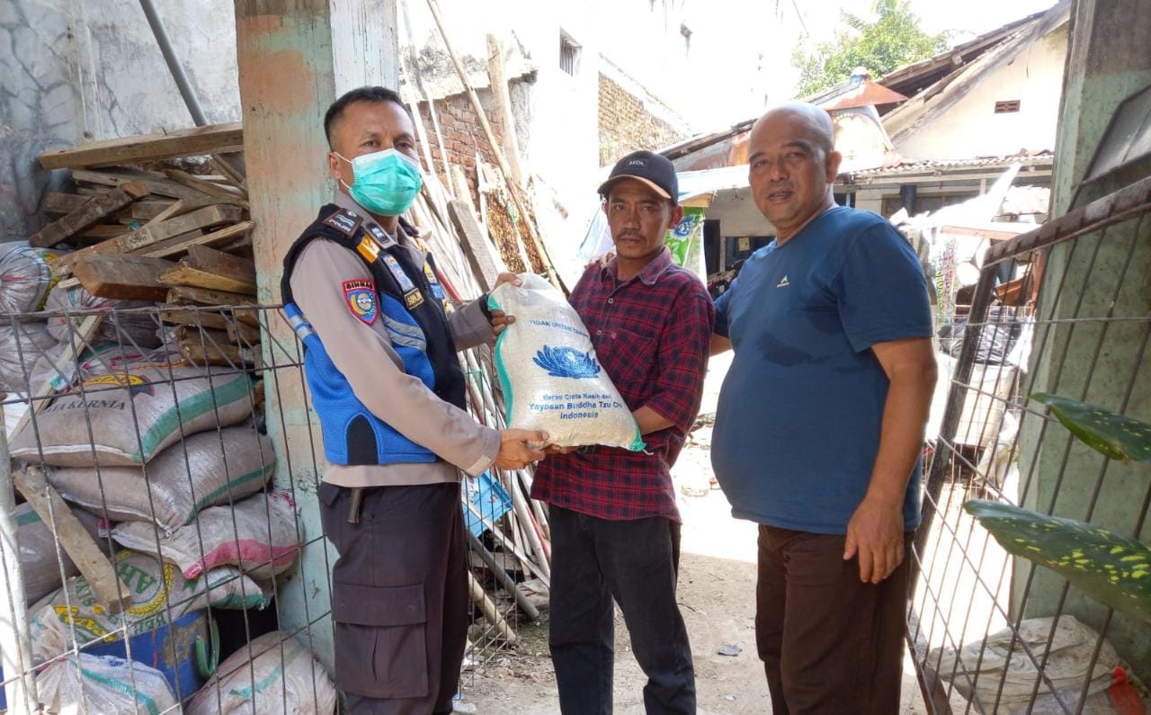 Polrestabes Bandung, Bhabinkantibmas Polsek Babakan Ciparay Kelurahan margasuka dan Kel. Sukahaji dalam pelaksanaan Pendistribusian Bantuan Sosial dari Mabes Polri dan kapolda Jabar melalui kapolrestabes Bandung ke Kapolsek Babakan Ciparay selanjutnya dibagikan kepada warga yang kurang mampu