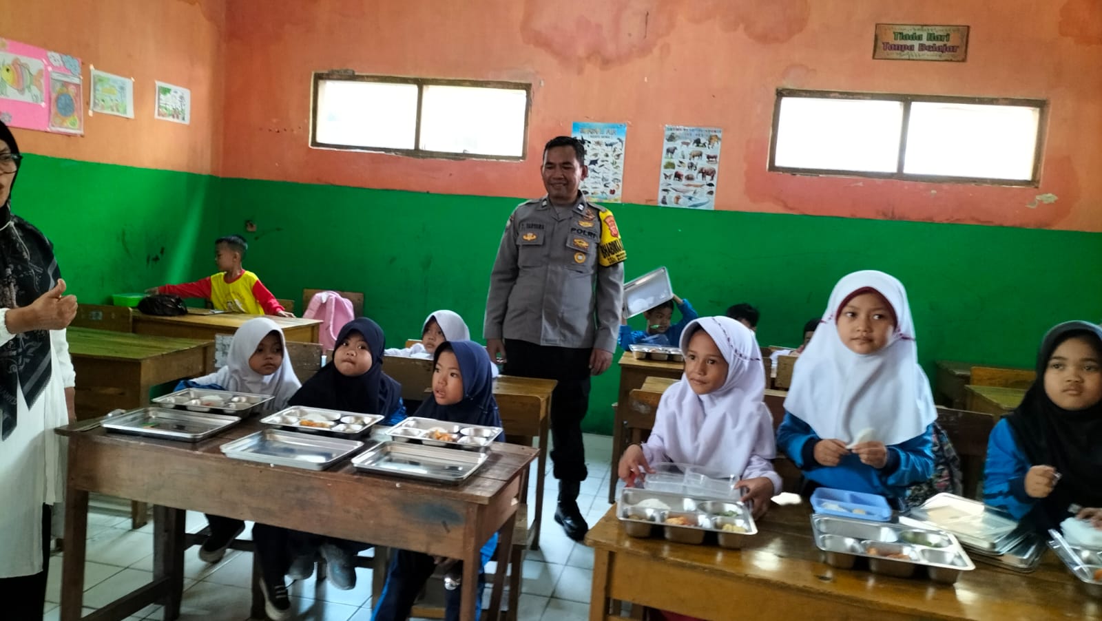 Polrestabes Bandung, Polda Jabar _ Polsek Bandung Kulon – Polsek Bandung Kulon melaksanakan kegiatan monitoring pemberian program makan bergizi Gratis (MBG) Pemerintah Kota Bandung kepada Siswa/siswi Sekolah MI AL FUTUHAD Kelurahan Warungmuncang yang berada Wilayah Hukum Polsek Bandung Kulon Kec. Bandung Kulon Kota Bandung. Selasa, 23/9/2025.