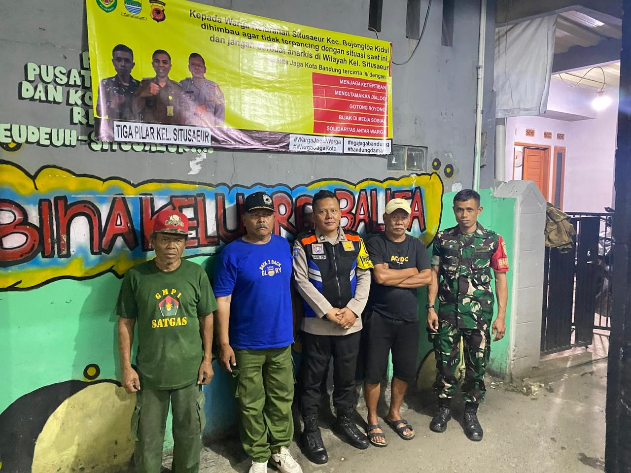 Polrestabes Bandung, Polda Jabar Polsek Bojongloa kidul – Dalam rangka meningkatkan kehadiran Polri di tengah masyarakat serta memperkuat sistem keamanan lingkungan, Bhabinkamtibmas Kelurahan Situsaeur, Aiptu Hari Cristian, melaksanakan kegiatan patroli dialogis dan pemantauan pos Satkamling/Ronda Siaga bersama warga dan anggota Linmas RW 07, Kelurahan Situsaeur, Kecamatan Bojongloa Kidul, Kota Bandung.