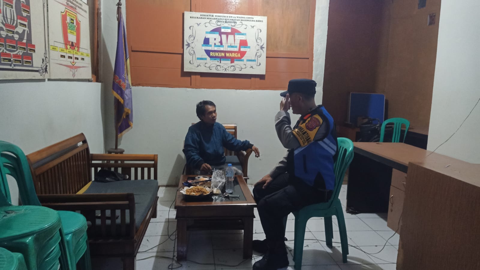 Polrestabes Bandung Polda Jabar Polsek Bojongloa Kidul – Dalam rangka menjaga situasi keamanan dan ketertiban masyarakat, Bhabinkamtibmas Kelurahan Mekarwangi Aipda Dodi Daryatna melaksanakan patroli malam hari bersama anggota Satlinmas RW 03 di Pos Satkamling Jalan Raden Rangga Kencana RT 02 RW 03, Warna Cinta, Kelurahan Mekarwangi, Kecamatan Bojongloa Kidul, Kota Bandung.