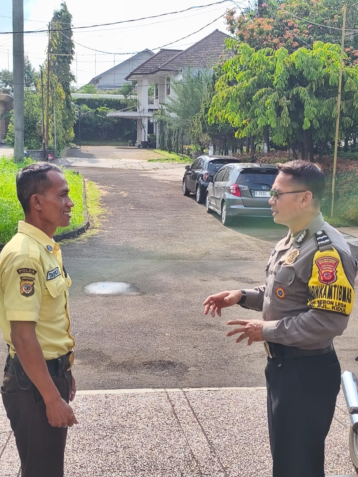 Polrestabes Bandung – Polda Jabar – Polsek Bojongloa Kidul – Bhabinkamtibmas Kelurahan Kebonlega, Aipda Arwanto, melaksanakan kegiatan sambang dan menyampaikan himbauan kamtibmas kepada petugas keamanan, Bapak Taufik, yang bertugas di kawasan Komplek Mekarwangi, Jl. Mekar Asih RT 01 RW 09, Kelurahan Kebonlega, Kecamatan Bojongloa Kidul, Kota Bandung.