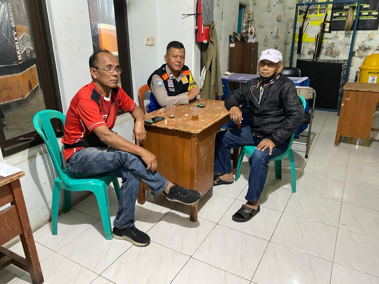 Polrestabes Bandung – Polda Jabar – Polsek Bojongloa Kidul – Bhabinkamtibmas Kelurahan Situsaeur, Aiptu Hari Cristian M, melaksanakan kegiatan sambang dan silaturahmi kepada warga masyarakat yang sedang melaksanakan ronda malam di Pos Siskamling RW 03, Jalan Nyengsereut Utara, Kelurahan Situsaeur, Kecamatan Bojongloa Kidul, Kota Bandung.