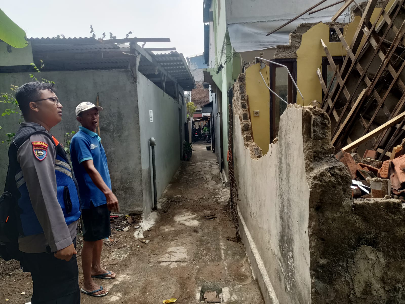 Bhabinkamtibmas Polsek Sukajadi Aipda Cut Muhyidin dengan sigap dan tanggap mendatangi rumah sudah rapuh sehingga menyebabkan retakan ditambah hujan deras berserta angin kencang yang menyebabkan plapon atap rumah ambruk di Jl. Cipedes tengah RT. 01 RW. 05 Kel. Sukagalih Kec. Sukajadi Kota Bandung