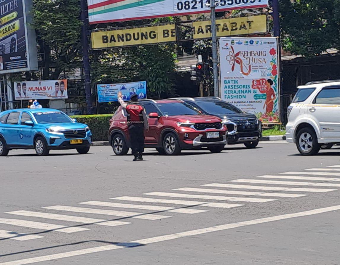 Polrestabes Bandung, Polda Jabar – Polsek Lengkong – Kanit Samapta Polsek Lengkong Ipda Korintus Sihombing,S.H. Pimpin pelayanan masyarakat siang Personil Unit Samapta Polsek Lengkong Polrestabes Bandung melaksanakan pelayanan masyarakat dan pengaturan arus lalu lintas siang di Jalan Buahbatu dan jalan Pelajar Pejuang 45 Kota Bandung, Minggu (12/10/2025).