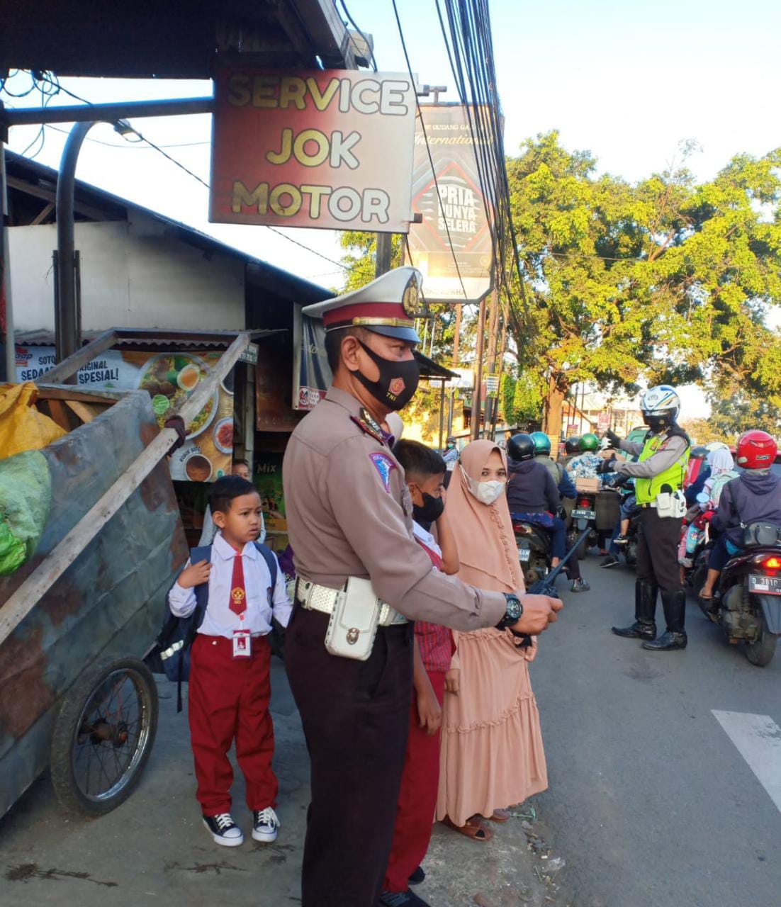 Polrestabes Bandung Dalam rangka memberikan pelayanan yang prima guna menciptakan kondisi Keamanan Keselamatan Ketertiban Kelancaran Lalu lintas (Kamseltibcarlantas) di hari pertama masuk sekolah pasca liburan, Personil Polsek Panyileukan Polrestabes Bandung melaksanakan pengaturan lalu lintas pada titik-titik yang ramai pengguna jalan, mulai dari persimpangan hingga depan sekolah. Senin (18/07/2022).