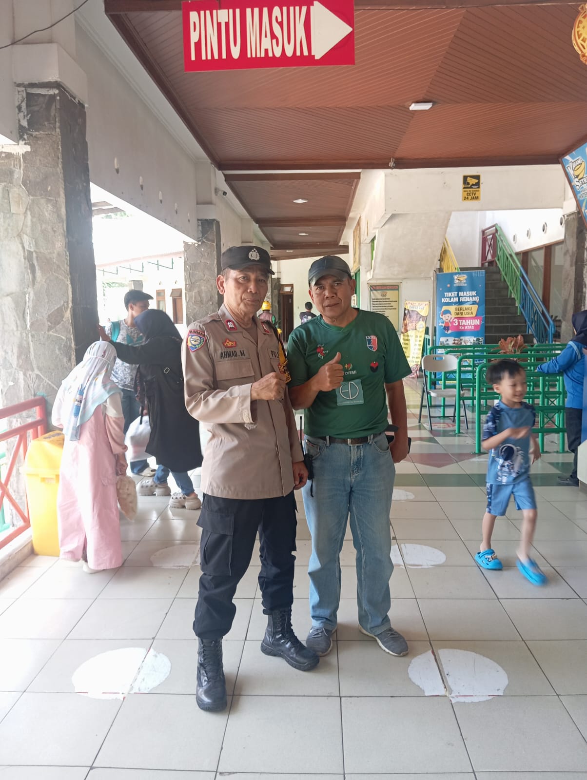 Kegiatan dilaksanakan dalam rangka sambang dan pengecekan jumlah pengunjung antisipasi adanya lonjakan pengunjung yang akan menyebabkan terjadi kemacetan arus lalulintas di sekitar area tempat wisata dan berikan himbauan upaya tercipta situasi Kamtibmas yang aman dan kondusif.