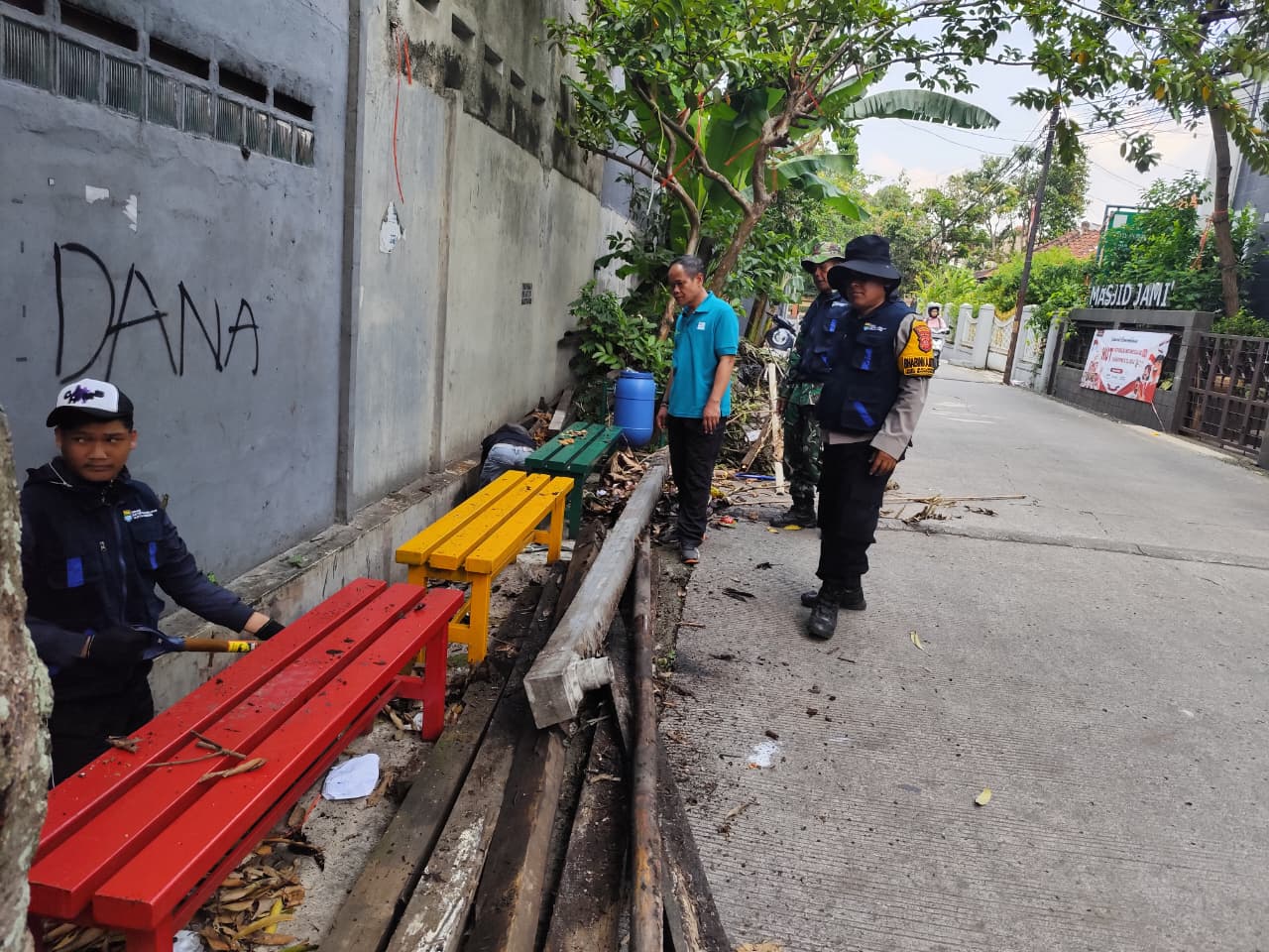 Dalam Rangka padat karya tingkat kelurahan, Bhabinkamtibmas Polsek bandung kidul Melaksanakan bersih bersih Bersama Warga