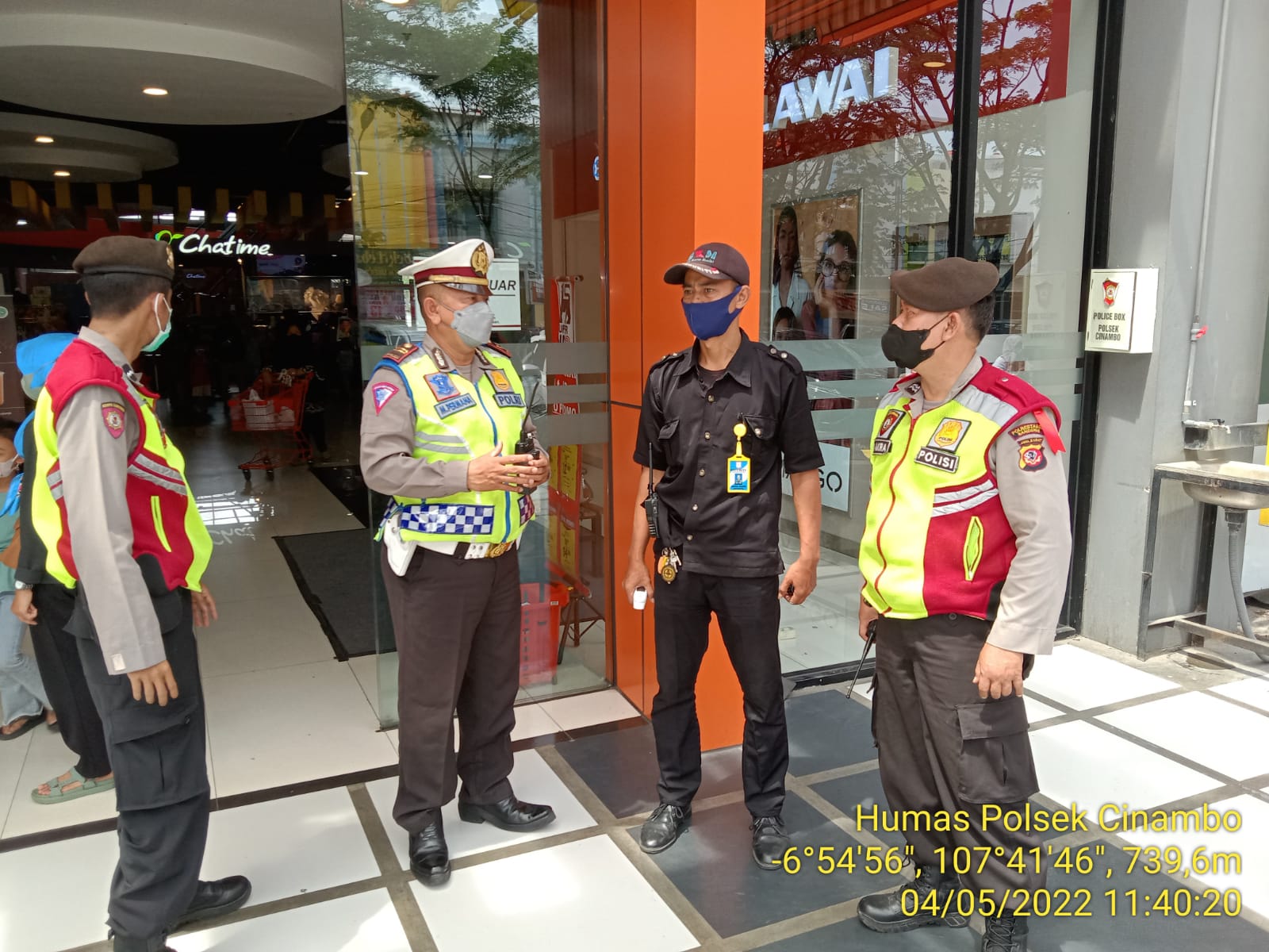 Polrestabes Bandung Padal Pospam Polsek Cinambo Iptu Maman Permana beserta personil Pospam melaksanakan korkom dan himbauan terkait parkiran mall ubertos Jl. Ah. Nasution Kel. Pakemitan Kec. Cinambo Kota Bandung,(04/05/2022).