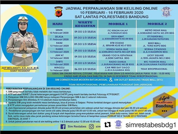 Jadwal Pelayanan SIM gerai Perpanjangan seminggu kedepan tgl 10 s.d 16 Februari 2020