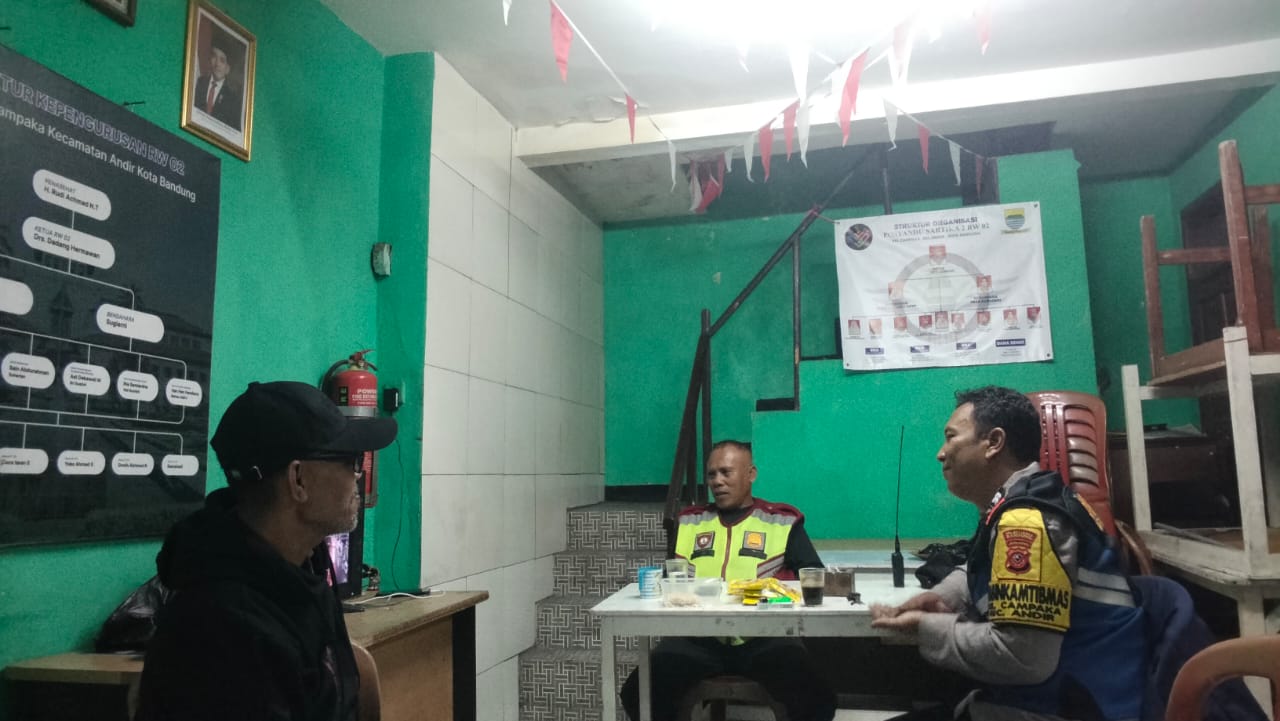 Piket fungsi Polsek Andir bersama dengan rekan – rekan Linmas Rw melaksanakan kegiatan Siskamling dan ronda malam serta menghimbau warga untuk tidak lupa mengunci pintu dan menyimpan kendaraan di tempat yang aman.