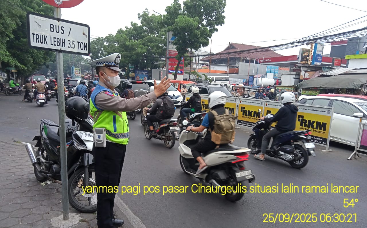 Polrestabes Bandung, Polda Jabar-Polsek Cibeunying Kaler – melaksanakan giat penjagaan dan pengaturan arus lalu lintas di Jl. Diponegoro, Jl. Surapati, Jl. PHH Mustopa dan Jl. Cikutra sebagai langkah antisipasi kemacetan serta meningkatnya arus lalin dan gangguan kamtibmas lainya. 25/09/2025