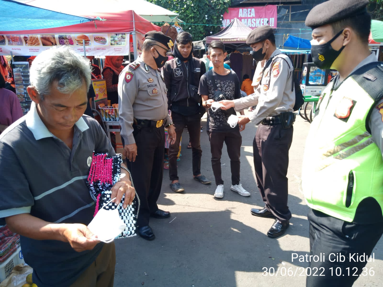 Polrestabes BandungKegiatan Himbauan Prokes dan Pengawasan PPKM Level 1 berdasarkan Perwal No. 80 Tahun 2022 dan Imendagri No.29 dalam rangka pengendalian dan memutus mata rantai penularan Corona Virus Disease 2019 (Covid 19) di Pasar Tumpah Kamis Saung Udjo Kel. Pasirlayung Kec. Cibeunying Kidul Kota Bandung. Kamis 30/06/2022.