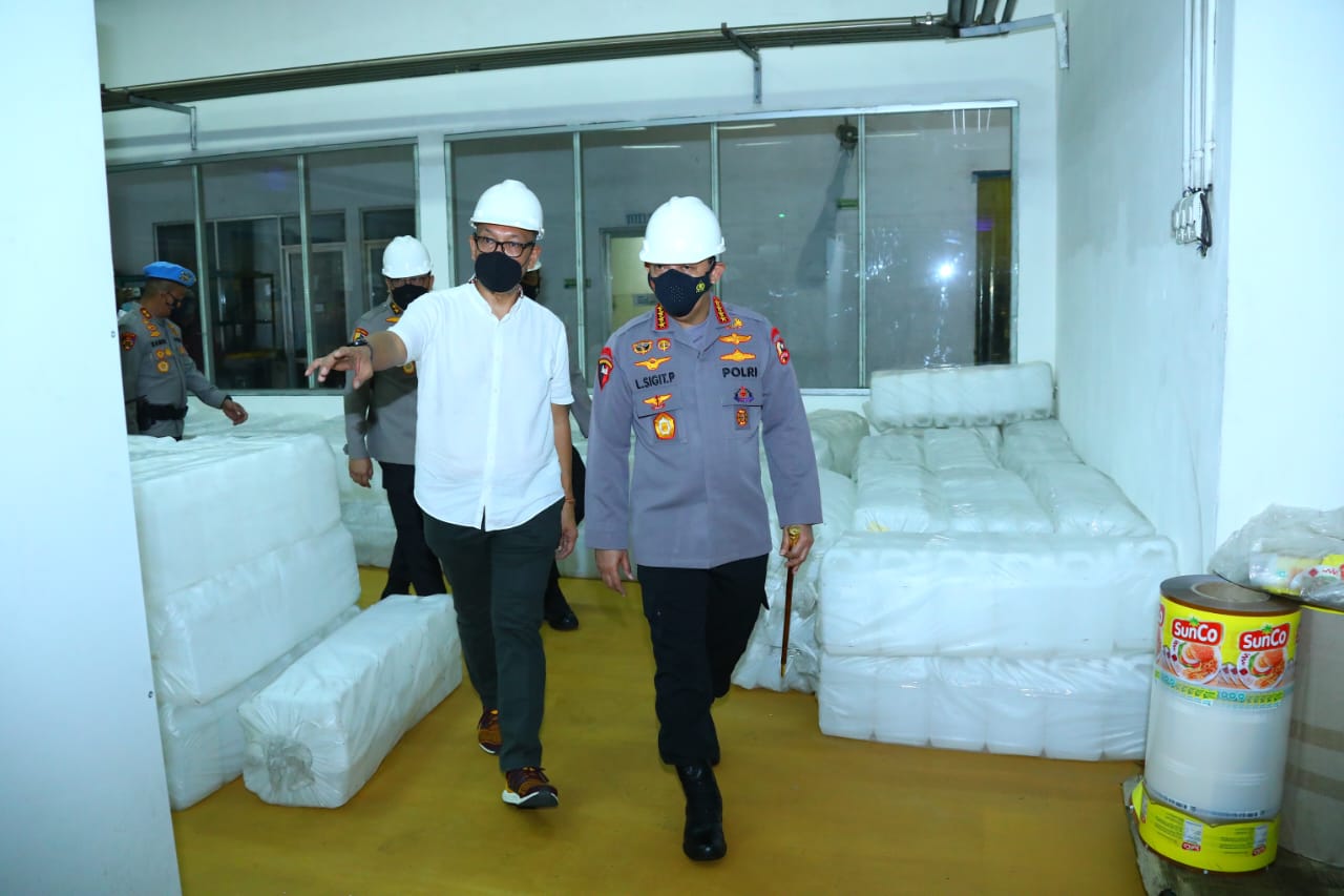 Bekasi – Kapolri Jenderal Listyo Sigit Prabowo meninjau langsung pabrik minyak goreng PT Mikie Oleo Nabati Industri Bekasi, Jawa Barat, Rabu (16/3/2022). Dalam pengecekannya, Kapolri memastikan proses produksi hingga pendistribusian ke pasar untuk memenuhi kebutuhan masyarakat.