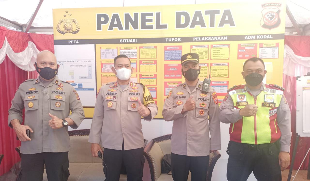 Kapolsek Rancasari Kompol Wendy Hendrik Boyoh, SE menerima kunjungan dari Kabag ops Polrestabes Bandung di Pos Yan Rest Area Km 147 Ops Ketupat Lodaya 2022.