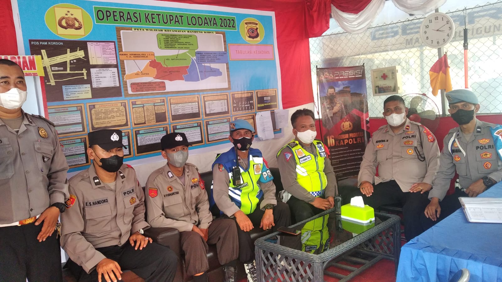 Dalam kunjungan tersebut disampaikan himbauan kepada personel yang bertugas di Pos Pengamanan Ketupat Lodaya 2022 untuk senantiasa menjaga kesehatan dan keselamatan pribadi dan mematuhi Prokes selama dalam melaksanakan tugas.