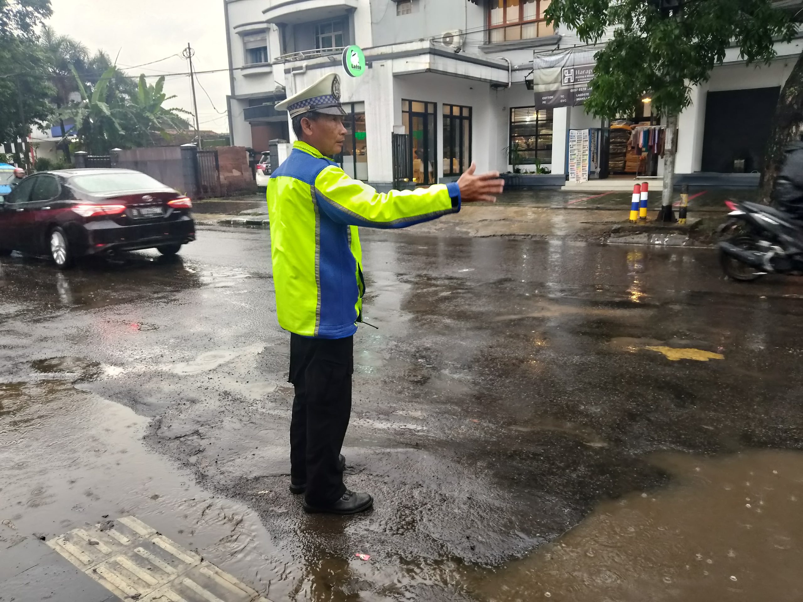 Selain mengatur arus lalu lintas, petugas juga memberikan himbauan kepada pengendara agar selalu mematuhi rambu lalu lintas serta lebih berhati-hati saat melintasi jalan yang basah dan licin. “Tetap berhati-hati, jangan memaksakan kecepatan di jalan basah, serta utamakan keselamatan,” ujar Ipda Yoyo S.