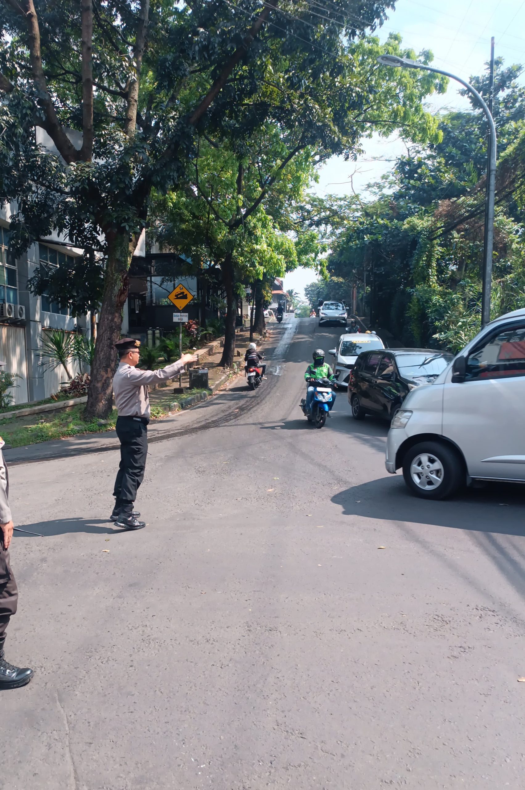 Polrestabes Bandung, Polda Jabar – Polsek Sukasari – Guna mengantisipasi terjadinya kemacetan di siang hari QR Polsek Sukasari Lakukan Giat Protap Yanmas siang Pengaturan Arus Lalulintas Jl.Terusan Sutami Kelurahan Sarijadi Kecamatan Sukasari Kota Bandung.(6/10/2025)