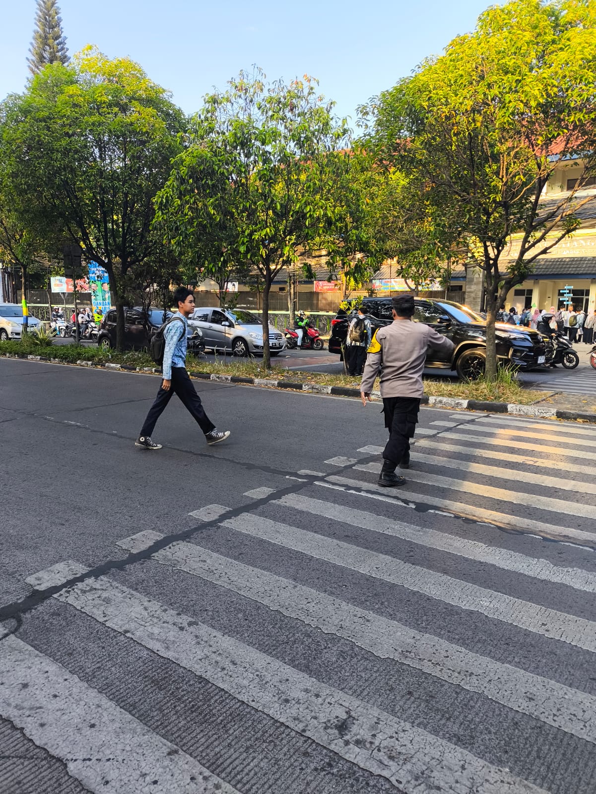 Untuk menjamin kelancaran arus Lalu lintas di pagi hari, Bripka Dadan Bhabinkamtibmas kelurahan Batununggal Polsek Bandung Kidul melaksanakan Pengaturan Lalu lintas di Depan SMPN 34 Bandung yang berada di Jalan Waas, Kecamatan Bandung Kidul Kota Bandung.