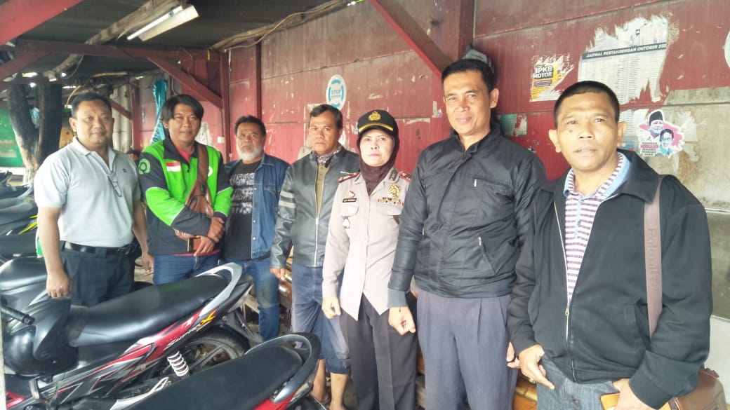 Wakapolsek Antapani AKP Lili Patonah didampingi Panit Intelkam Ipda Adhi Akhmadi melaksanakan pembinaan dan penyuluhan terhadap komunitas ojek online dan ojek pangkalan