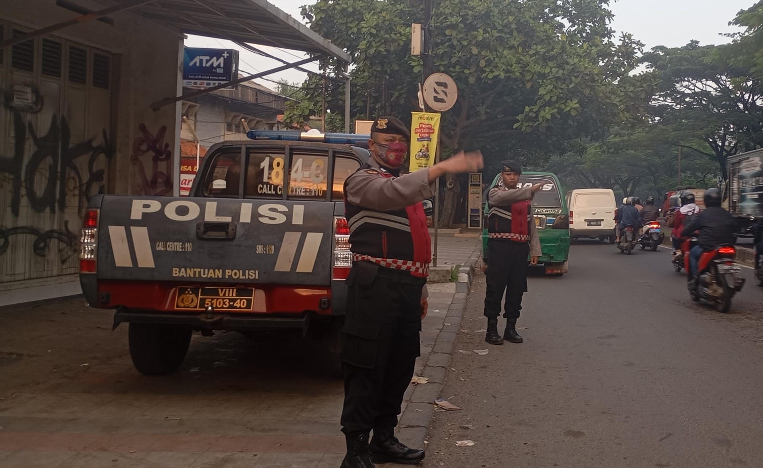 Anggota Patroli di tempatlan dititik-titik rawan kemacetan pagi hari terutama di jalan soekarno Hatta Kota Bandung.