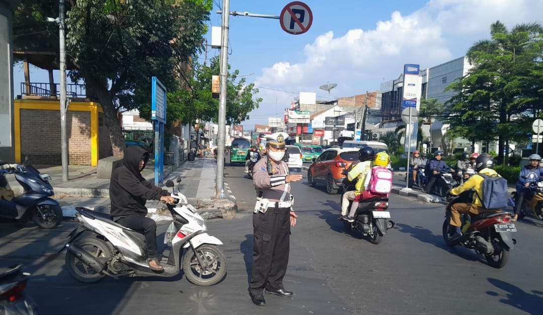 Personel lalulintas Polsek Arcamanik antisipsi kemacetan pada siang hari