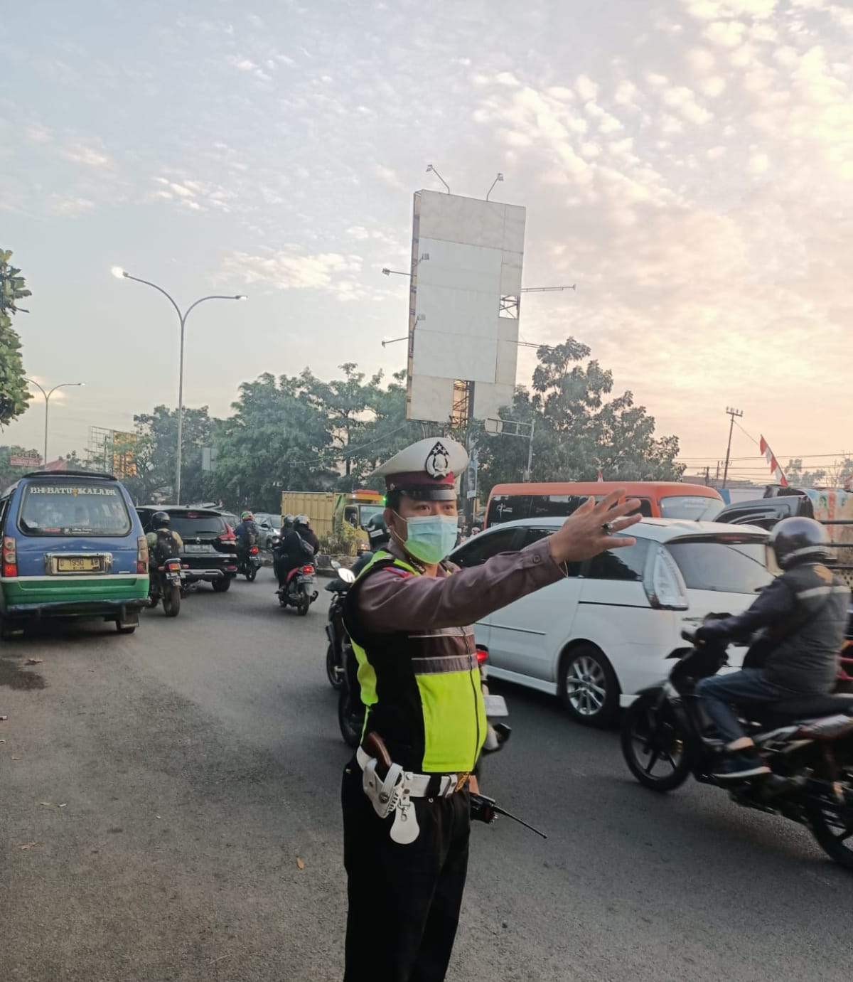 Arus lalu lintas pada pagi hari cukup padat masyarakat yang akan beraktivitas, untuk antisipasi kemacetan perlu kehadiran anggota Polri di lapangan melaksanakan pengaturan arus lalu lintas sehingga terciptanya Kamseltibcarlantas.