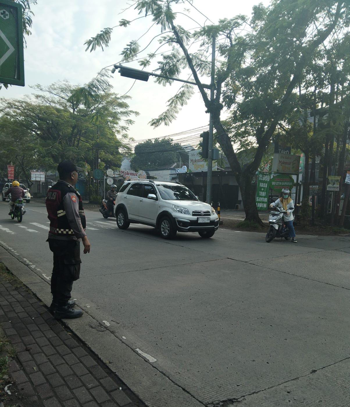 Personel Samapta Polsek Arcamanik Lakukan Giat Pengaturan Arus Lalulintas pagi Hari