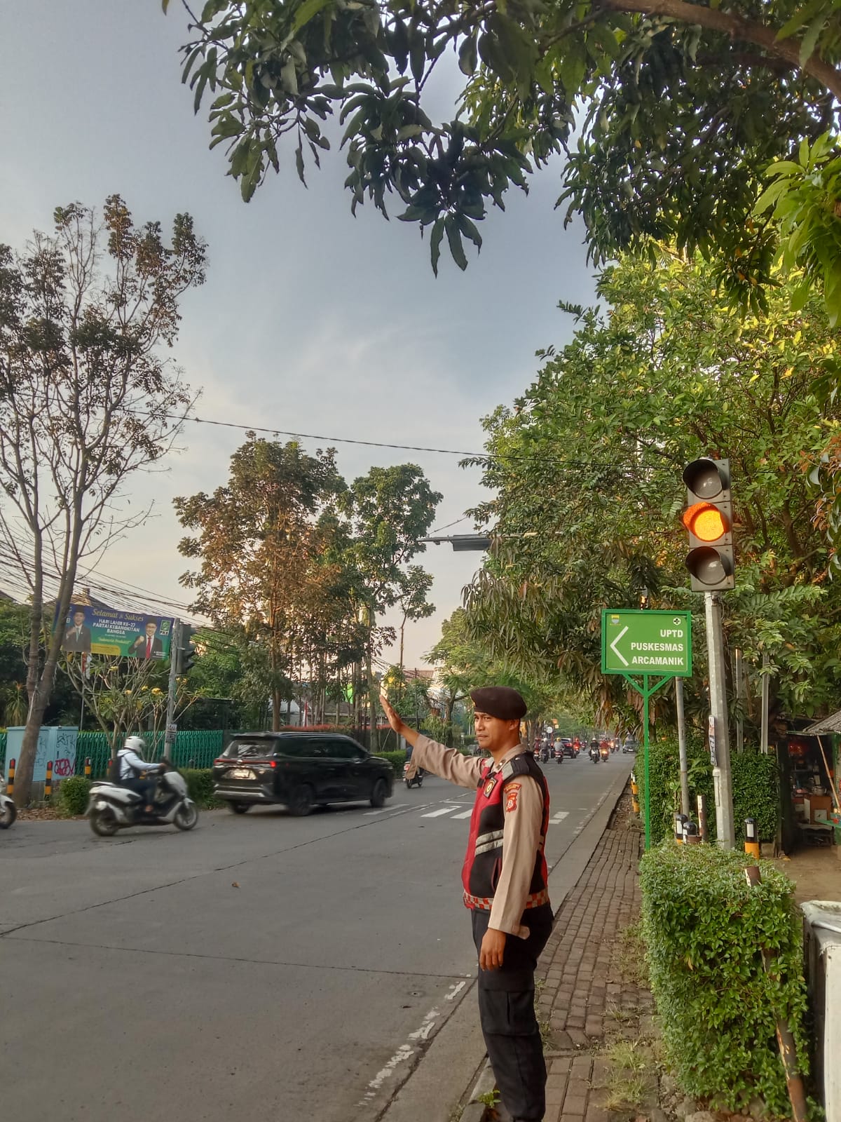 Personel Samapta Polsek Arcamanik Lakukan Giat Pengaturan Arus Lalulintas pagi Hari