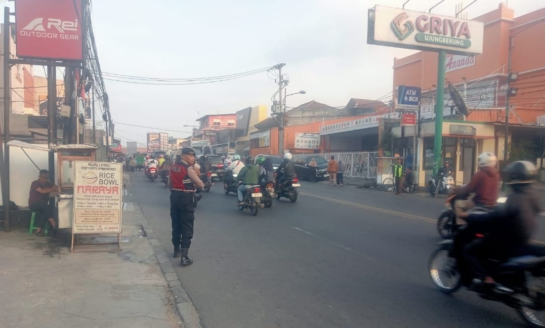 Polrestabes Bandung- Polda Jabar Polsek Ujungberung – Antisipasi kemacetan Pagi personil Samapta Polsek Ujungberung melaksanakan pengamanan dan pengaturan di tempat tempat rawan kemacetan seperti di Jl. A.H. Nasution-Jln Kaum depan Pasar Ujungberung 15 Oktober 2025