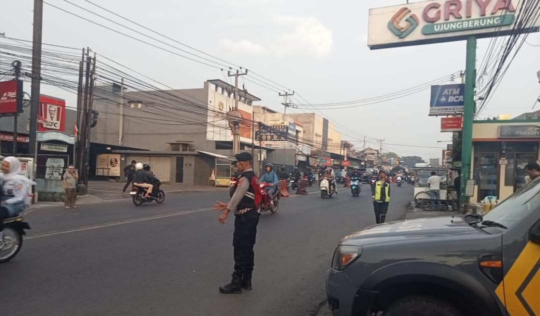 Personel Samapta Polsek Ujungberung Lakukan Giat Pengaturan Arus Lalu-lintas Pagi Hari