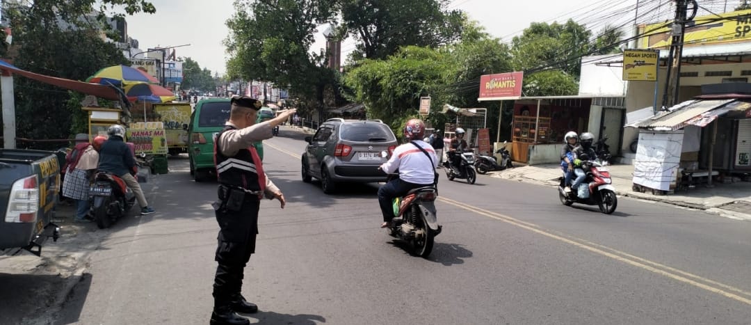 Polrestabes Bandung- Polda Jabar Polsek Ujungberung – Antisipasi kemacetan Siang Hari personil Samapta Polsek Ujungberung melaksanakan pengamanan dan pengaturan di tempat tempat rawan kemacetan seperti Di Jl. A.H. Nasution-Jln Kaum depan Pasar Ujungberung. (16-10-2025)