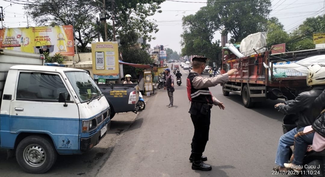 Polrestabes Bandung- Polda Jabar Polsek Ujungberung – Antisipasi kemacetan Siang Hari personil Samapta Polsek Ujungberung melaksanakan pengamanan dan pengaturan di tempat tempat rawan kemacetan seperti Di Jl. A.H. Nasution-Jln Kaum depan Pasar Ujungberung.(22-10-2025)