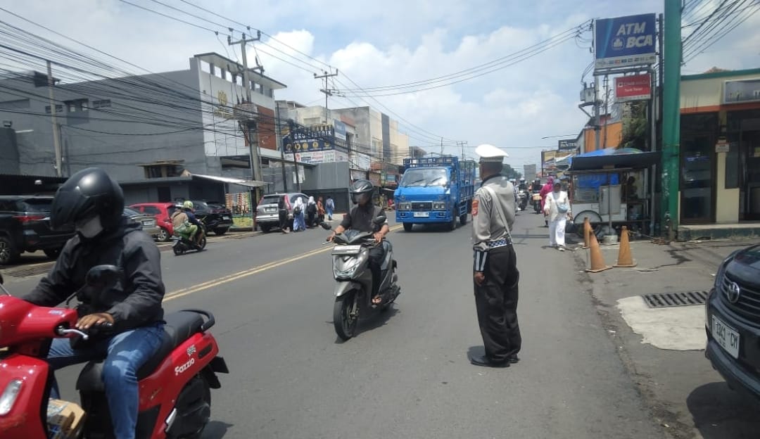 Polrestabes Bandung- Polda Jabar Polsek Ujungberung –Antisipasi kemacetan Siang Hari personil Samapta Polsek Ujungberung melaksanakan pengamanan dan pengaturan di tempat tempat rawan kemacetan seperti Di Jl. A.H. Nasution-Jln Kaum depan Pasar Ujungberung.(25-10-2025)