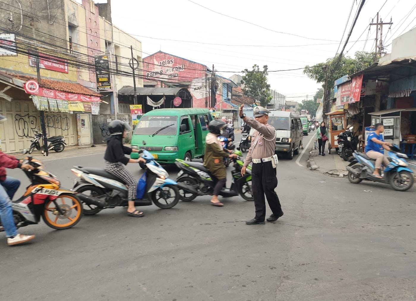 Personel Unit Lantas Polsek Babakan Ciparay Lakukan Pengaturan Arus Lalu Lintas Pagi Hari