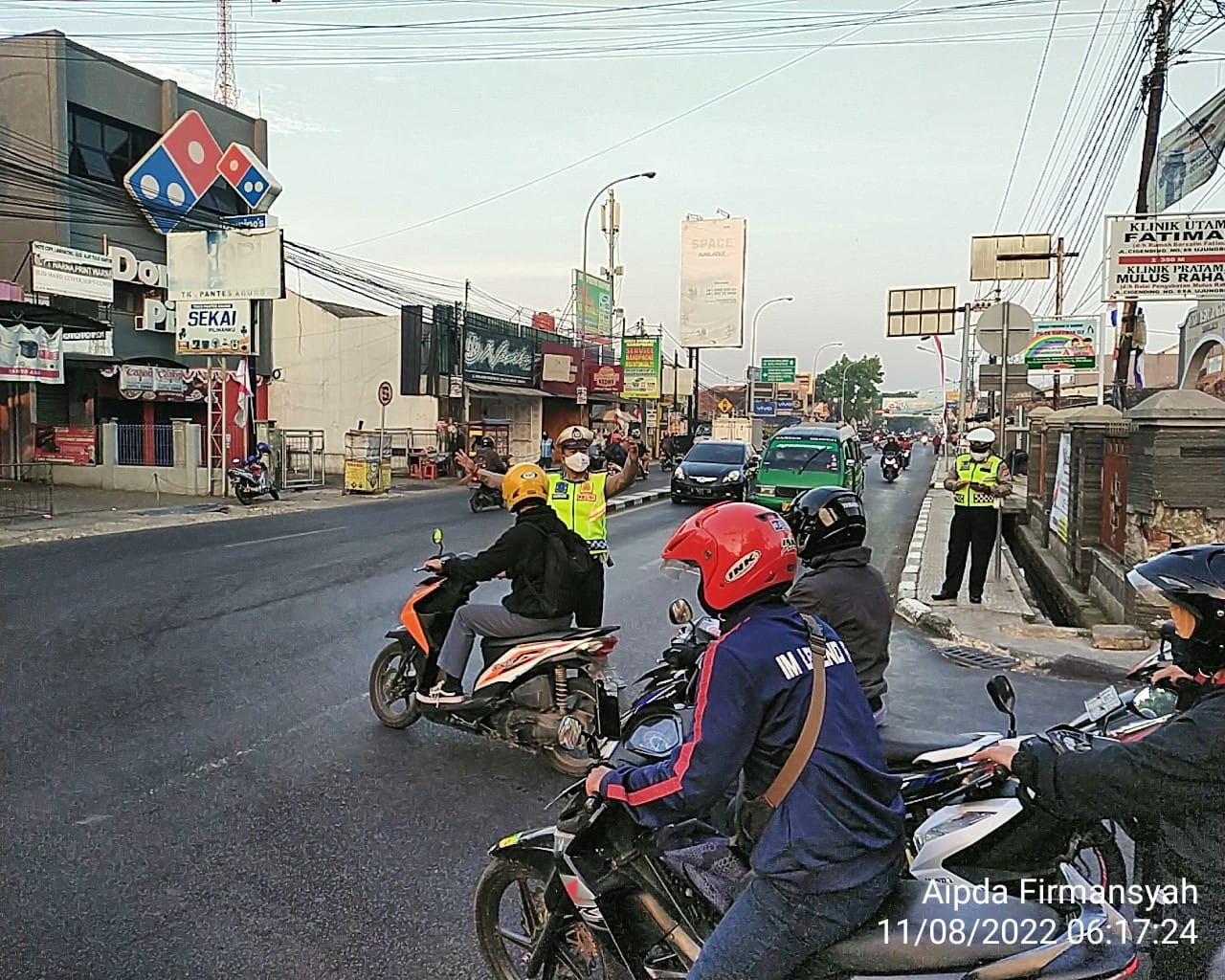 Kegiatan dilaksanakan dalam rangka memberikan pelayanan kepada masyarakat yang akan melaksanakan giat rutin di pagi hari dengan tetap mematuhi aturan berlalulintas dan protokol kesehatan.