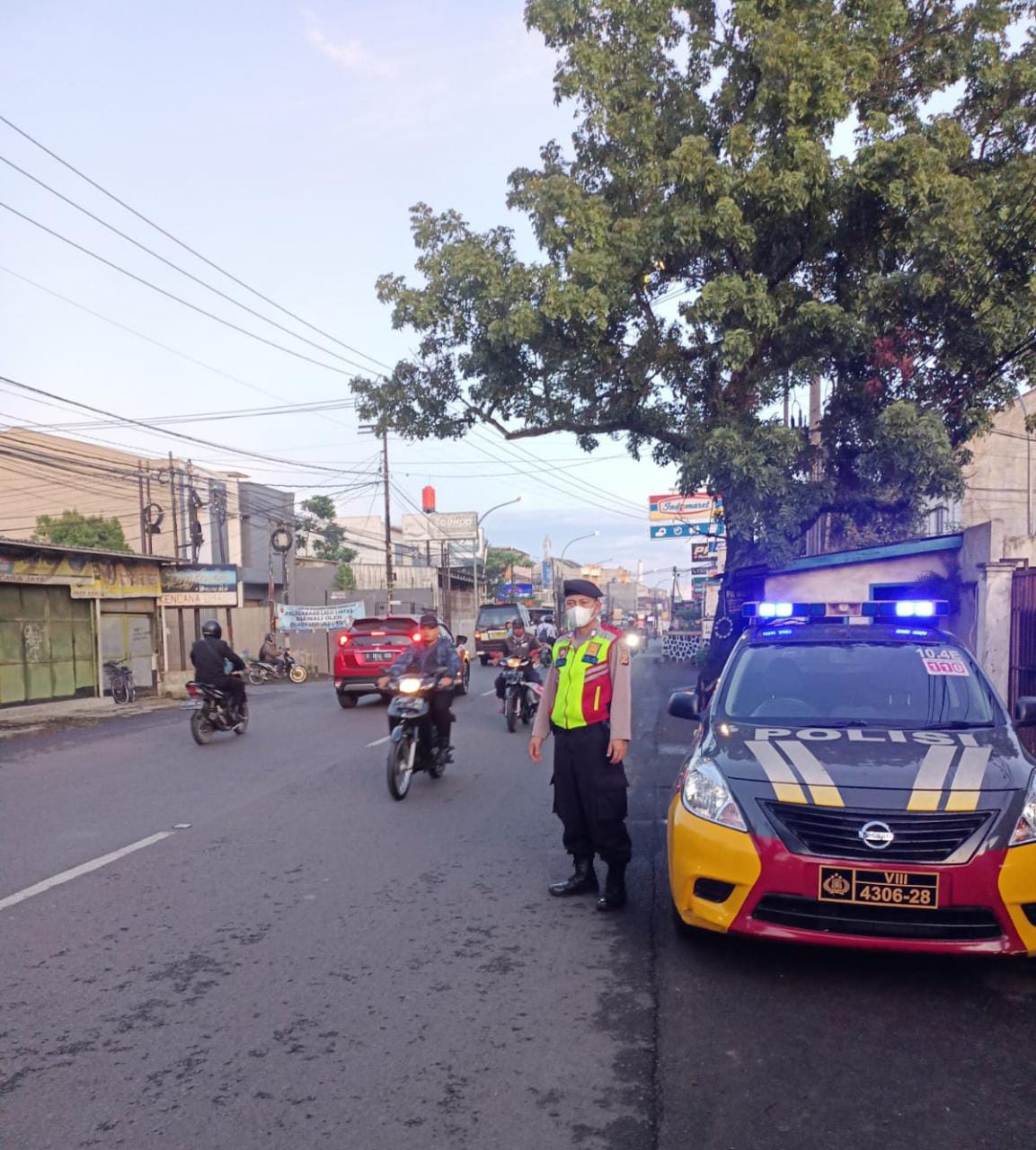 Polrestabes Bandung – Selasa 28 Juni 2022, Personil Polsek Buah Batu melaksanakan Yanmas Pagi Dititik Persimpangan Rawan Kemacetan Arus Lalulintas diwilayah hukum Polsek Buah Batu.
