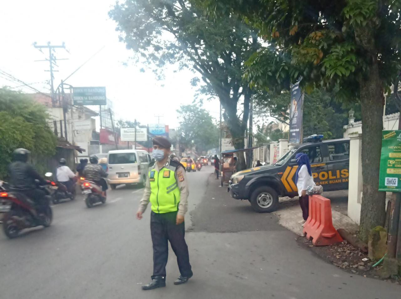 Polrestabes Bandung –Rabu 06 Juli 2022, Personil Polsek Buah Batu melaksanakan Yanmas Pagi Dititik Persimpangan Rawan Kemacetan Arus Lalulintas diwilayah hukum Polsek Buah Batu.